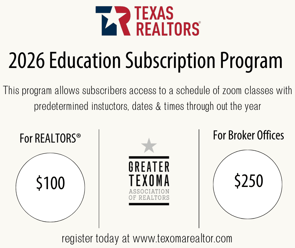 The 2026 Texas REALTORS® subscription program allows subscribers access to schedule classes with predetermined instructors, dates, and times throughout the year. There's no risk of cancellation and the programs tiered pricing offers flexible options for participation. All attendees at each location must be viewable on camera to qualify for CE.